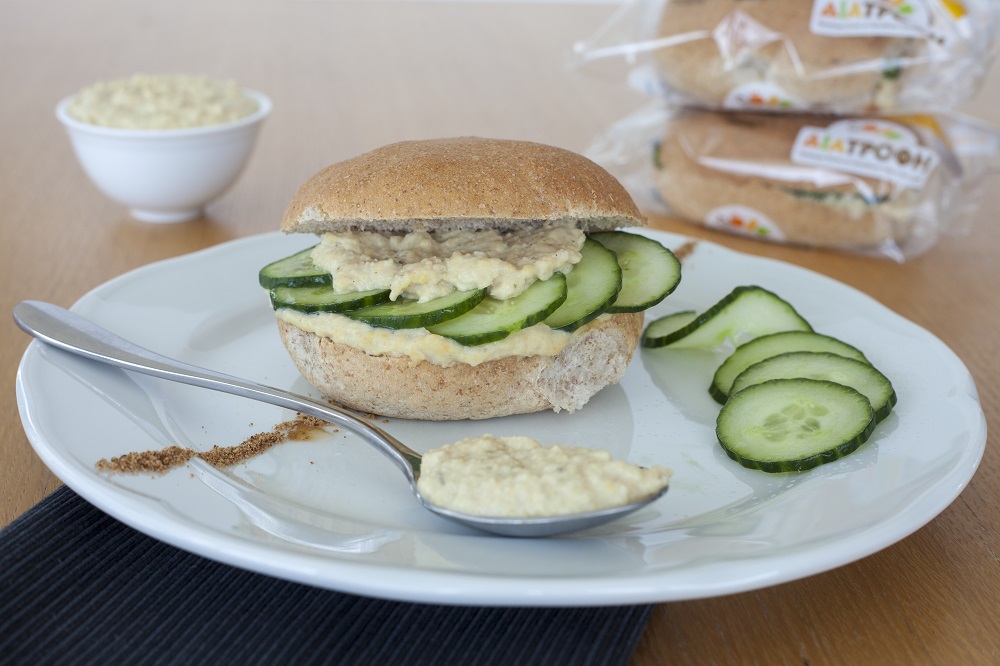 Σάντουιτς με χούμους και αγγούρι.Παρασκευάζεται με ψωμί ολικής άλεσης, χούμους και αγγούρι. Χάρη στο χούμους, αυτό το γεύμα αποτελεί ιδανική πηγή φυτικών πρωτεϊνών, μία καλή εναλλακτική του κρέατος, καθώς δεν περιέχει κορεσμένα λιπαρά τα οποία επιβαρύνουν την υγεία της καρδιάς. Παράλληλα, το αγγούρι εκτός της σωστής ενυδάτωσης του σώματος, περιέχει και βιταμίνες όπως η βιταμίνη C, που ενισχύει την άμυνα του οργανισμού.