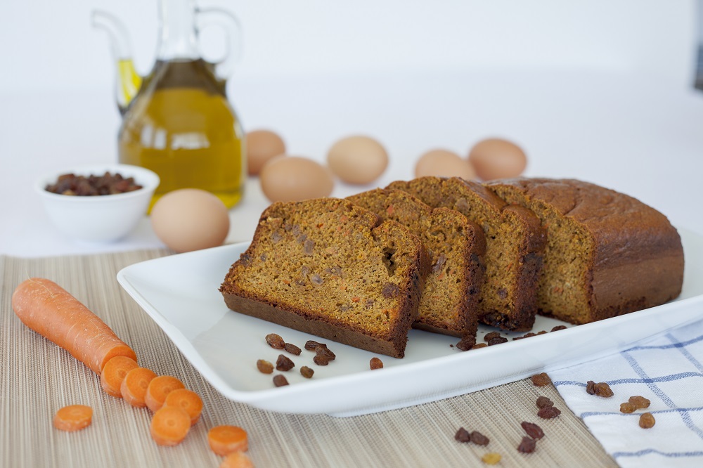 Κέικ καρότο.Το κέικ καρότο παρασκευάζεται με αλεύρι ολικής άλεσης, καρότο, αυγό, μέλι, σταφίδες και ελαιόλαδο. Το αυγό είναι η πλουσιότερη πηγή πρωτεϊνών υψηλής βιολογικής αξίας για σωστή ανάπτυξη. Το καρότο προσφέρει πολύ υψηλά ποσοστά προβιταμίνης Α, απαραίτητα για την άμυνα του οργανισμού και την καλή όραση. Οι σταφίδες αποτελούν καλή πηγή καλίου που βοηθάει στη ρύθμιση της αρτηριακής πίεσης και φυτικών ινών (μαζί με το αλεύρι ολικής άλεσης) που βοηθούν στην καλή λειτουργία του εντέρου.