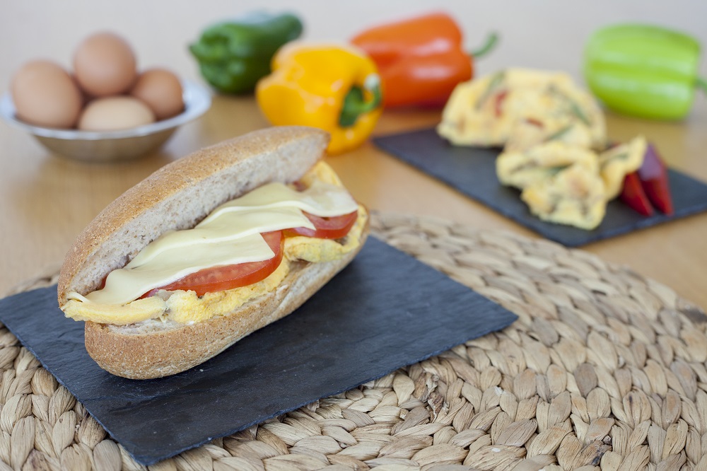 Σάντουιτς ολικής με ψητή ομελέτα λαχανικών, ημίσκληρο τυρί και τομάτα.Παρασκευάζεται με ψωμί ολικής άλεσης, αυγό, πολύχρωμες πιπεριές, κρεμμύδι, τομάτα, τυρί και ελαιόλαδο. Το αυγό αποτελεί μία εξαιρετική πηγή πρωτεϊνών υψηλής βιολογικής αξίας. Οι πιπεριές είναι πλούσιες σεβιταμίνες με αντιοξειδωτική δράση, όπως τα καροτενοειδή που συμβάλλουν, στην καλή όραση αλλά και τη βιταμίνη C που ενισχύει την άμυνα του οργανισμού. Επιπλέον, το ελαιόλαδο προσφέρει μονοακόρεστα λιπαρά που βοηθούν στην καλή υγεία της καρδιάς