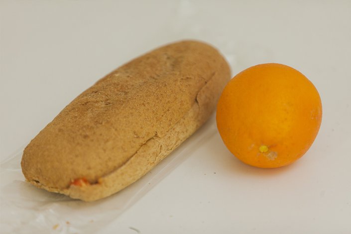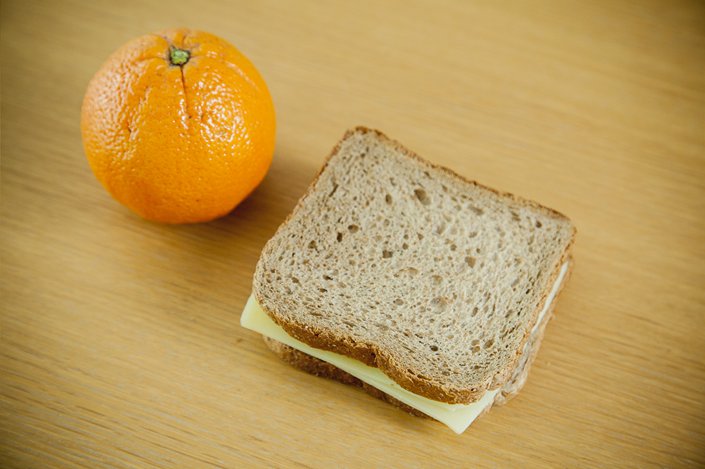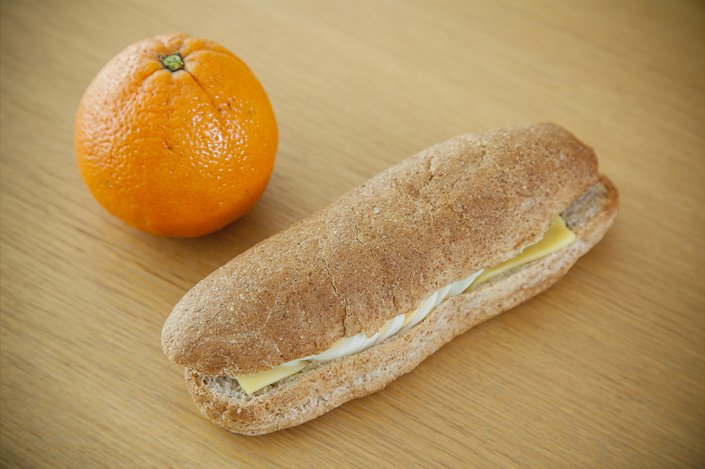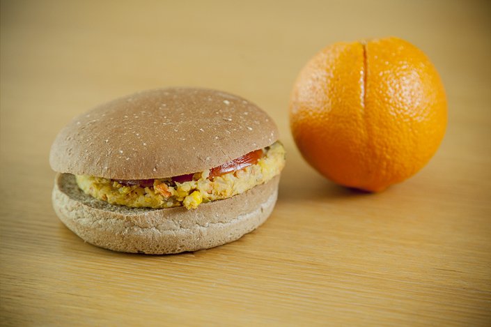 Σάντουιτς με κοτόπουλο, πορτοκάλι. Το σάντουιτς παρασκευάζεται με αλεύρι ολικής άλεσης 60%, ντομάτα και ψητό στήθος κοτόπουλο μαριναρισμένο σε ελαιόλαδο και μυρωδικά. Αποτελεί πηγή πρωτεϊνών υψηλής βιολογικής αξίας, φυτικών ινών, βιταμινών όπως η βιταμίνη Β12 , αλλά και μετάλλων (σίδηρος, κ.ά.)..