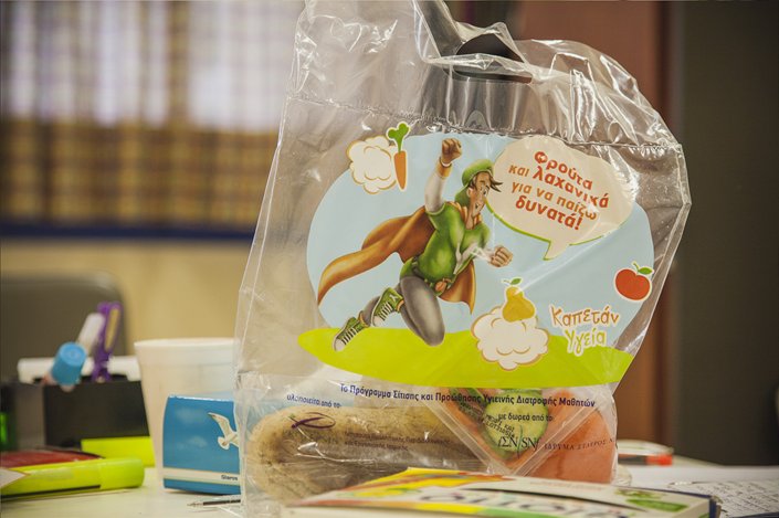 Συσκευασία γεύματος για μαθητές δημοτικών σχολείων