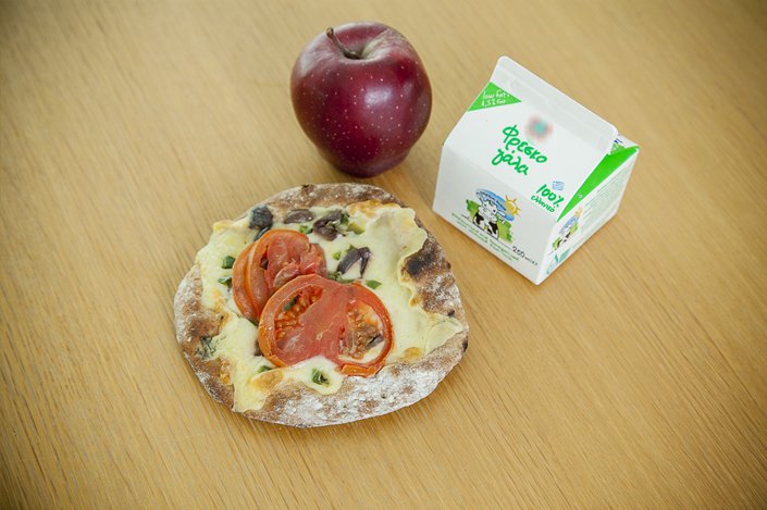 Πίτσα λαχανικών, γάλα και φρούτο εποχής